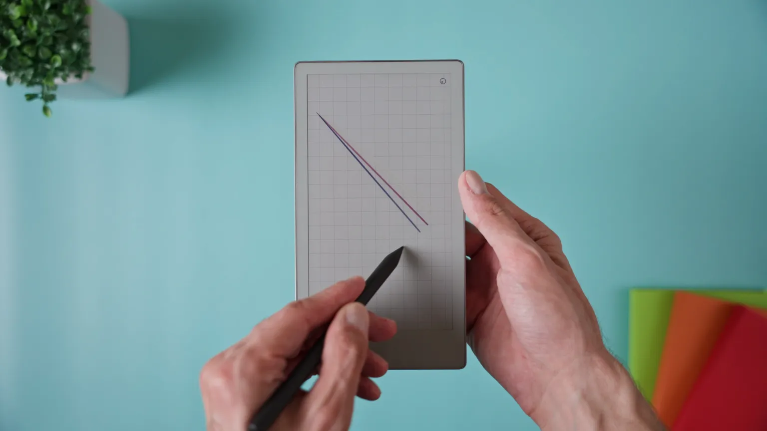 If you draw a line by hand and hold the pen tip still at the end, the reMarkable automatically straightens it for you. You can then drag the endpoint to adjust its length or angle.