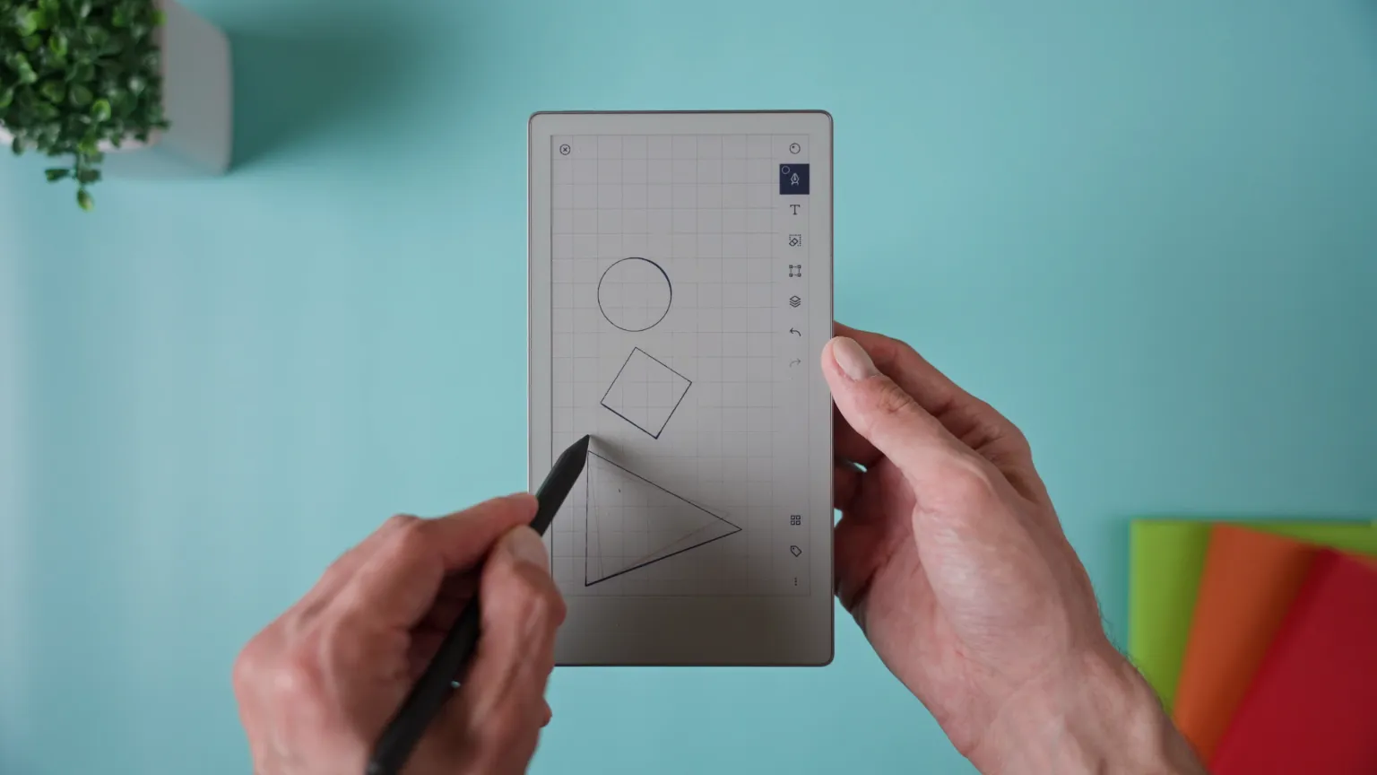 This trick also works for shapes — just make sure you’ve got Shapes enabled. Draw a circle, square, rectangle, or triangle, then hold the pen at the end. The shape will instantly clean itself up, and you can resize or rotate it as needed.