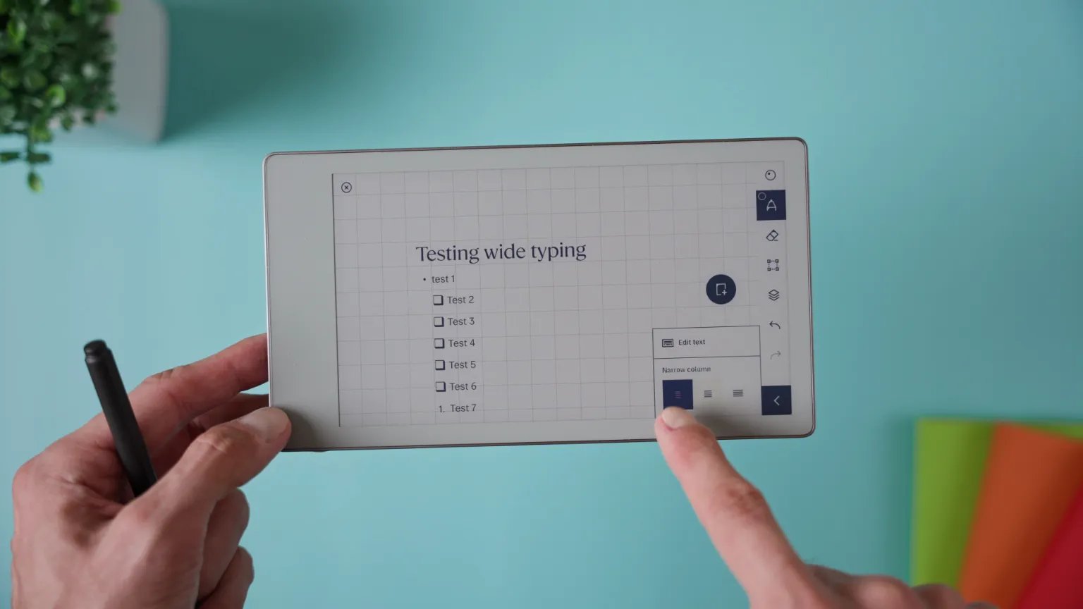 By default, when you use the Text Tool, the column for typing is quite narrow. To expand it, tap Text in the toolbar and switch to “Wide column.” This stretches your text area across more of the page — perfect if you’re typing longer notes, journaling, or working in landscape mode.